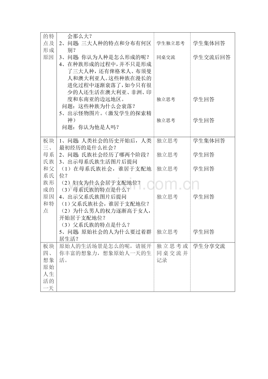 3、 通过比较了解母系氏族和父系氏族的形成原因和特点。