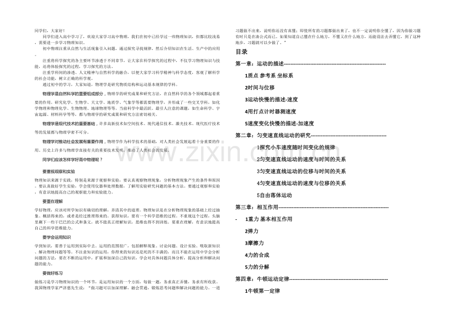 同学们进入高中学习了,欢迎大家学习高中物理,我们在初中已经学过一些物理知识,但都比较浅易,需要进一步学习物理知识。