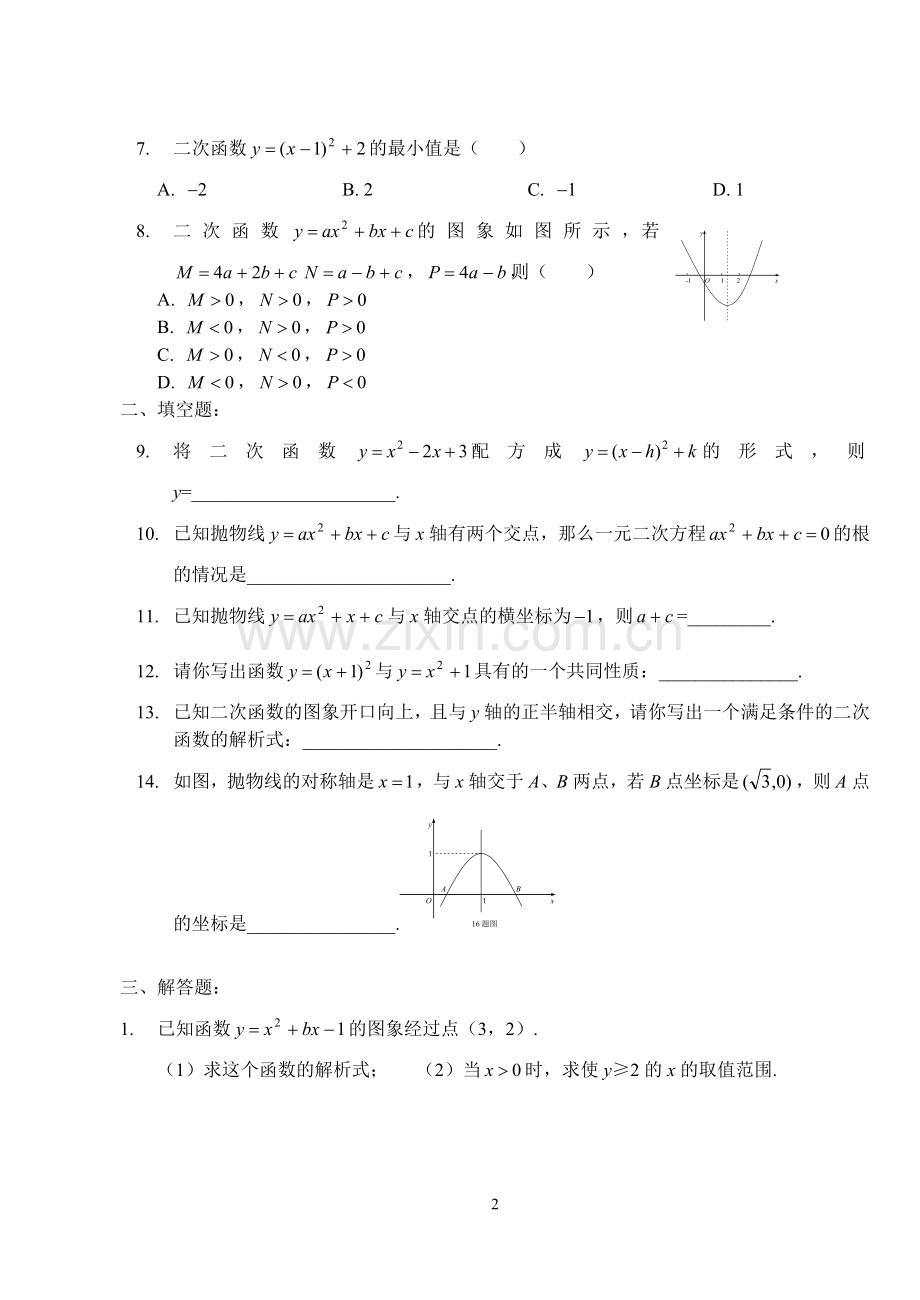 7. 二次函数的最小值是( )
