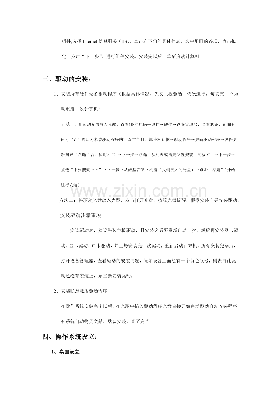 (1) 桌面上只存放“我的文档”、“我的电脑”、“网上邻居”、“回收站” 、“Internet Explorer(IE浏览器)”图标,其他所有删除;