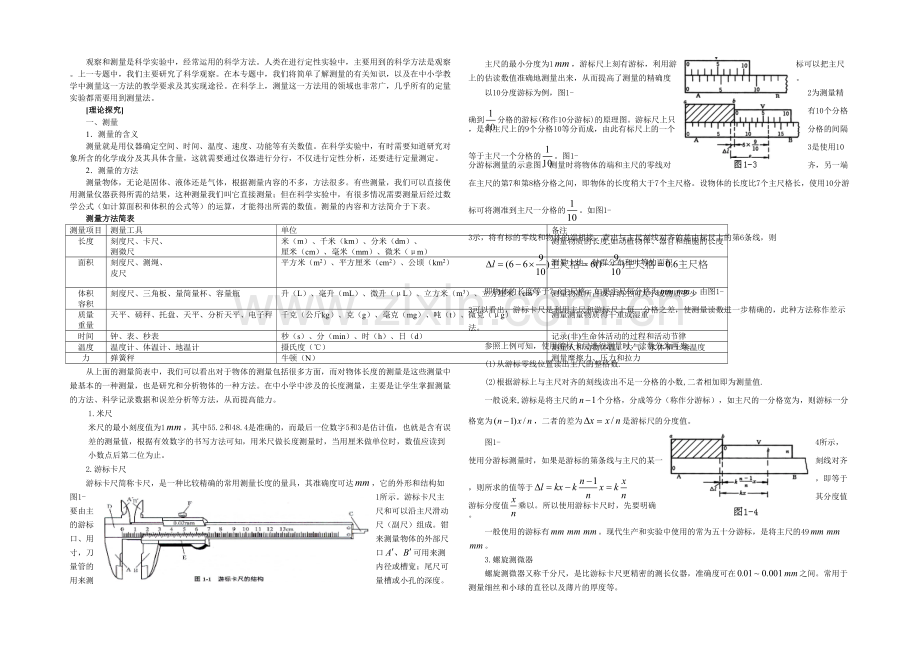 从上面的测量简表中,我们可以看出对于物体的测量包括很多方面,而对物体长度的测量是这些测量中最基本的一种测量,也是研究和分析物体的一种方法。在中小学中涉及的长度测量,主要是让学生掌握测量的方法、科学记录数据和误差分析等方法,从而提高能力。