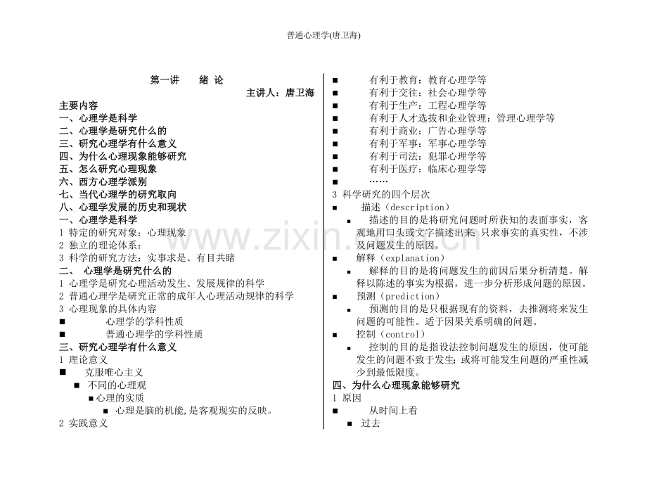 1 心理学是研究心理活动发生、发展规律的科学