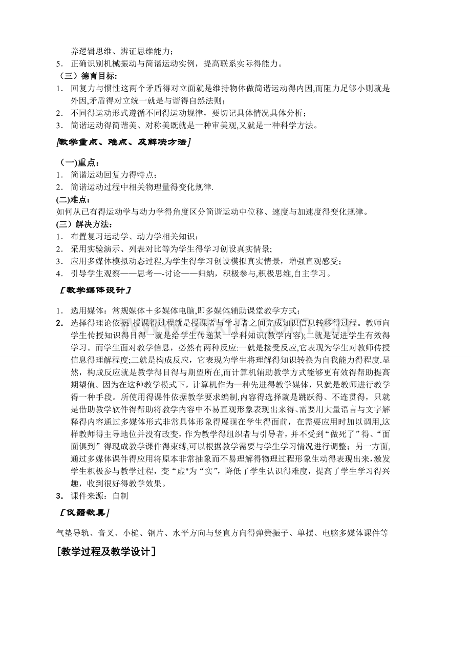 4. 分析简谐运动过程中有关物理量得变化规律,认识各物理量之间存在密切得相互关系,培养逻辑思维、辨证思维能力;