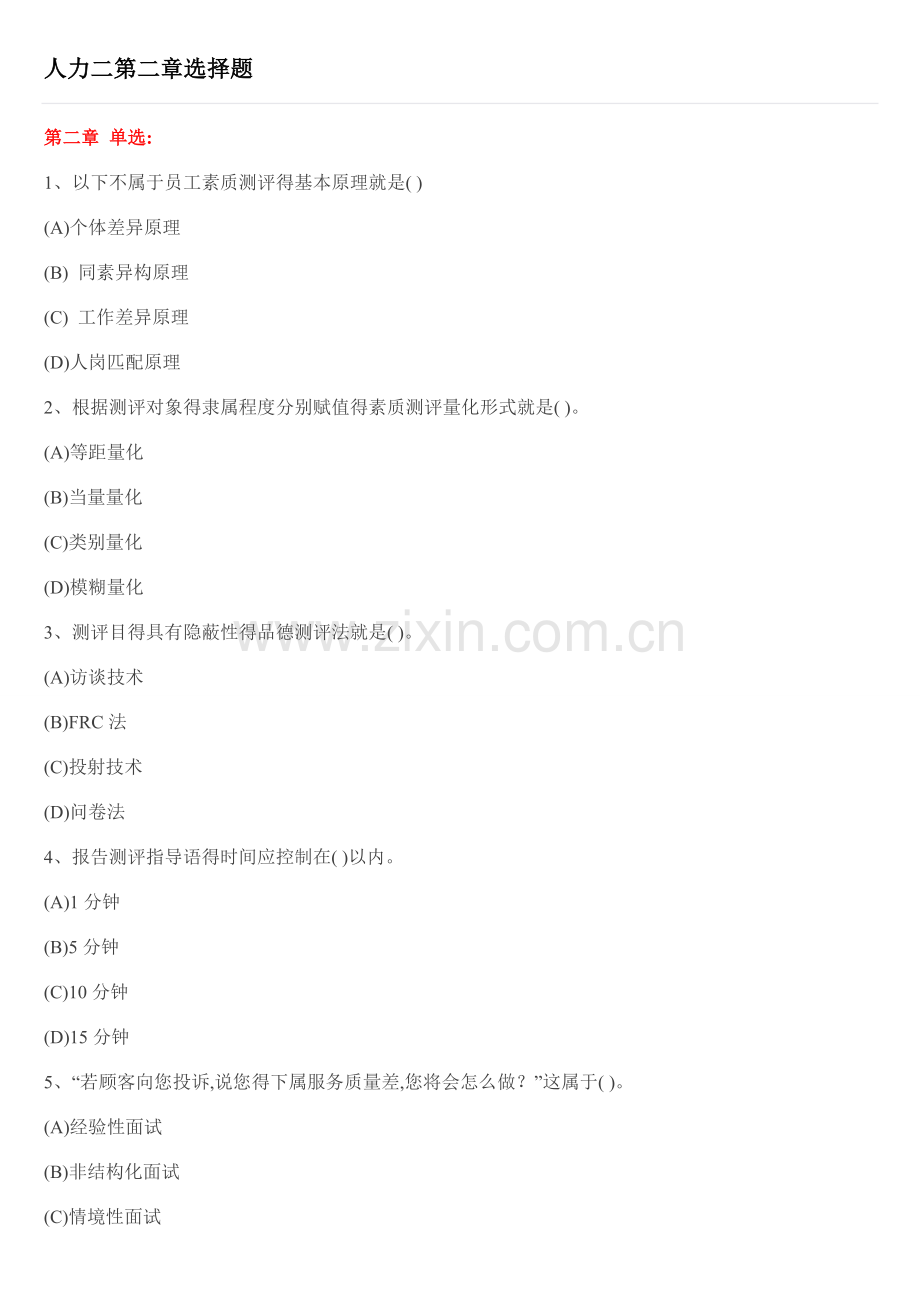2、根据测评对象得隶属程度分别赋值得素质测评量化形式就是( )。