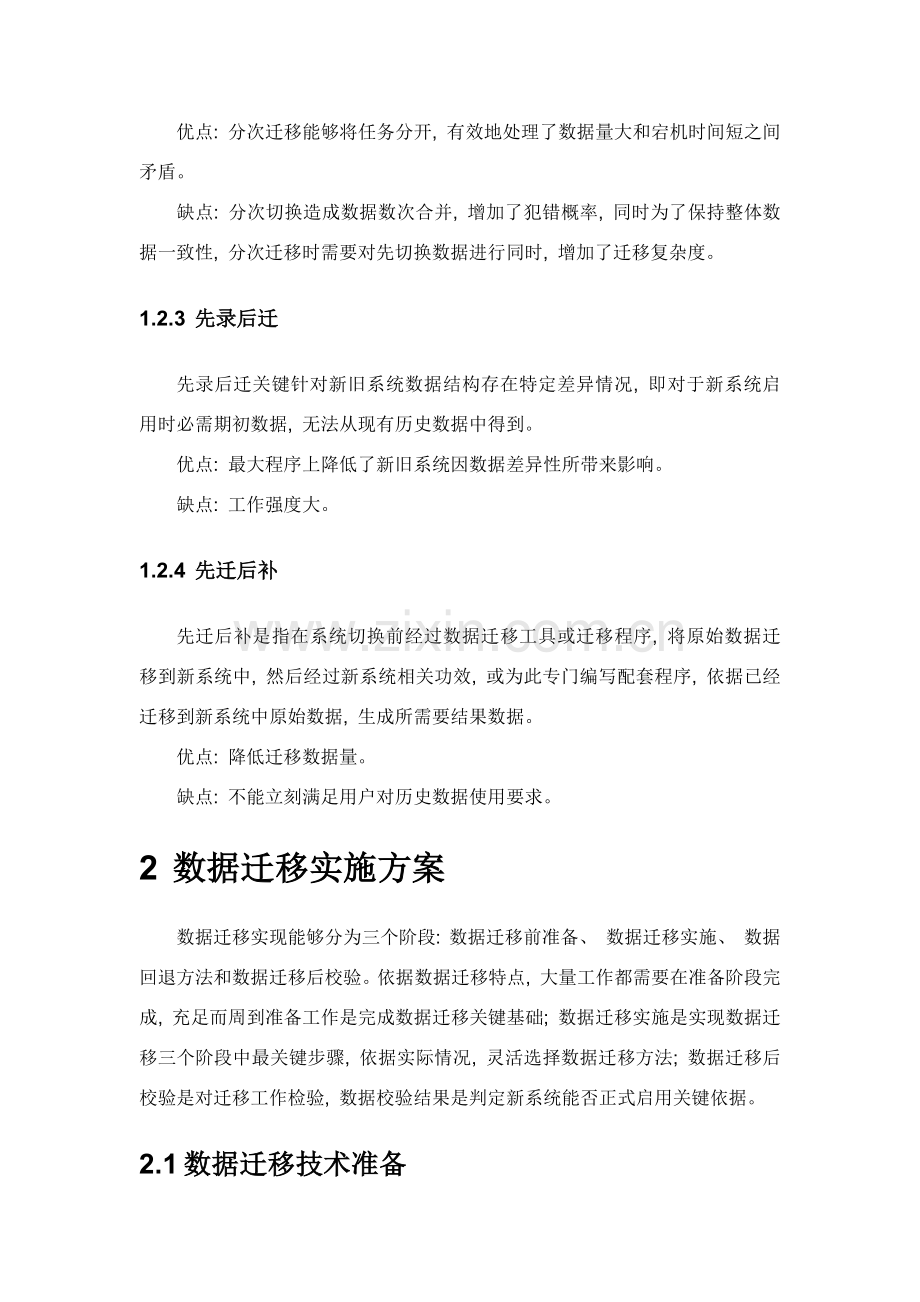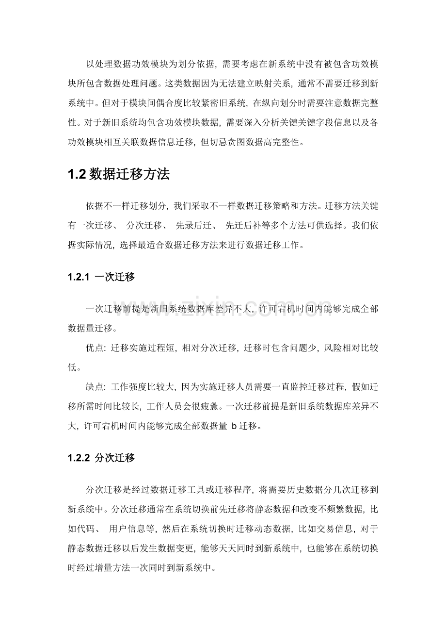 依据不一样迁移划分, 我们采取不一样数据迁移策略和方法。迁移方法关键有一次迁移、 分次迁移、 先录后迁、 先迁后补等多个方法可供选择。我们依据实际情况, 选择最适合数据迁移方法来进行数据迁移工作。