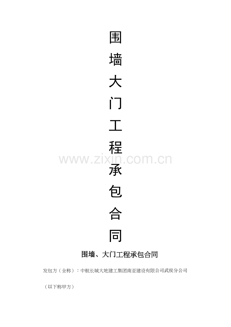 发包方(全称):中航长城大地建工集团南亚建设有限公司武侯分公司