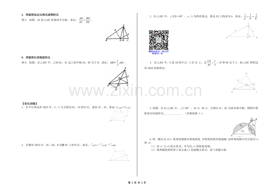 4.同底(等底)的两个三角形面积的比等于高的比。