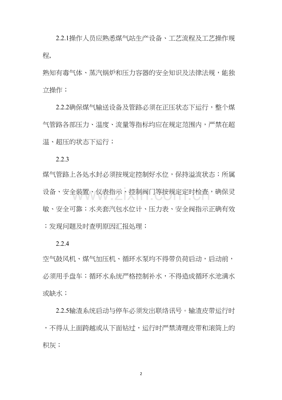 2.1.2严禁洒后上岗,严禁在煤气站范围内吸烟;