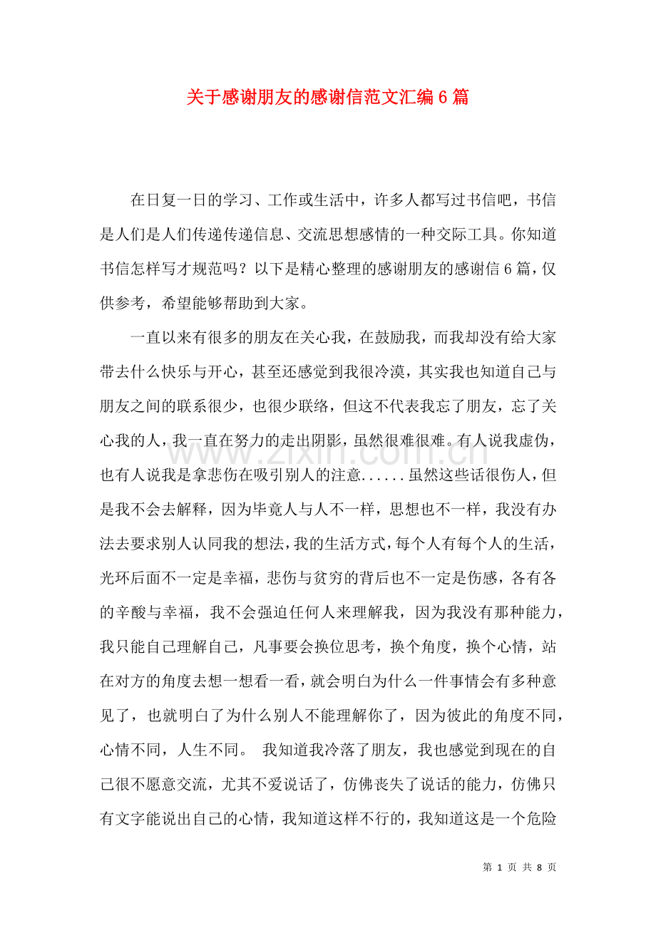 在日复一日的学习、工作或生活中,许多人都写过书信吧,书信是人们是人们传递传递信息、交流思想感情的一种交际工具。你知道书信怎样写才规范吗?以下是精心整理的感谢朋友的感谢信6篇,仅供参考,希望能够帮助到大家。