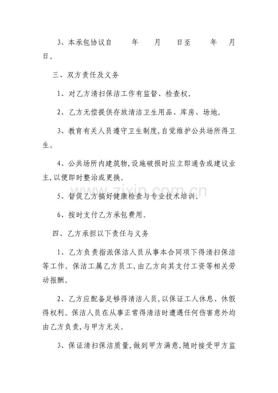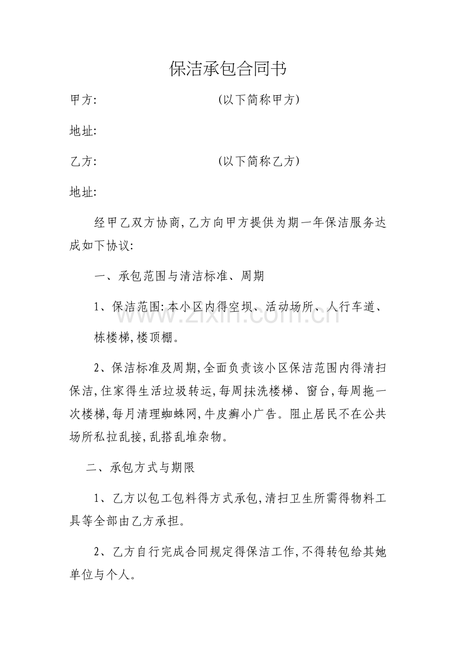 保洁承包合同书