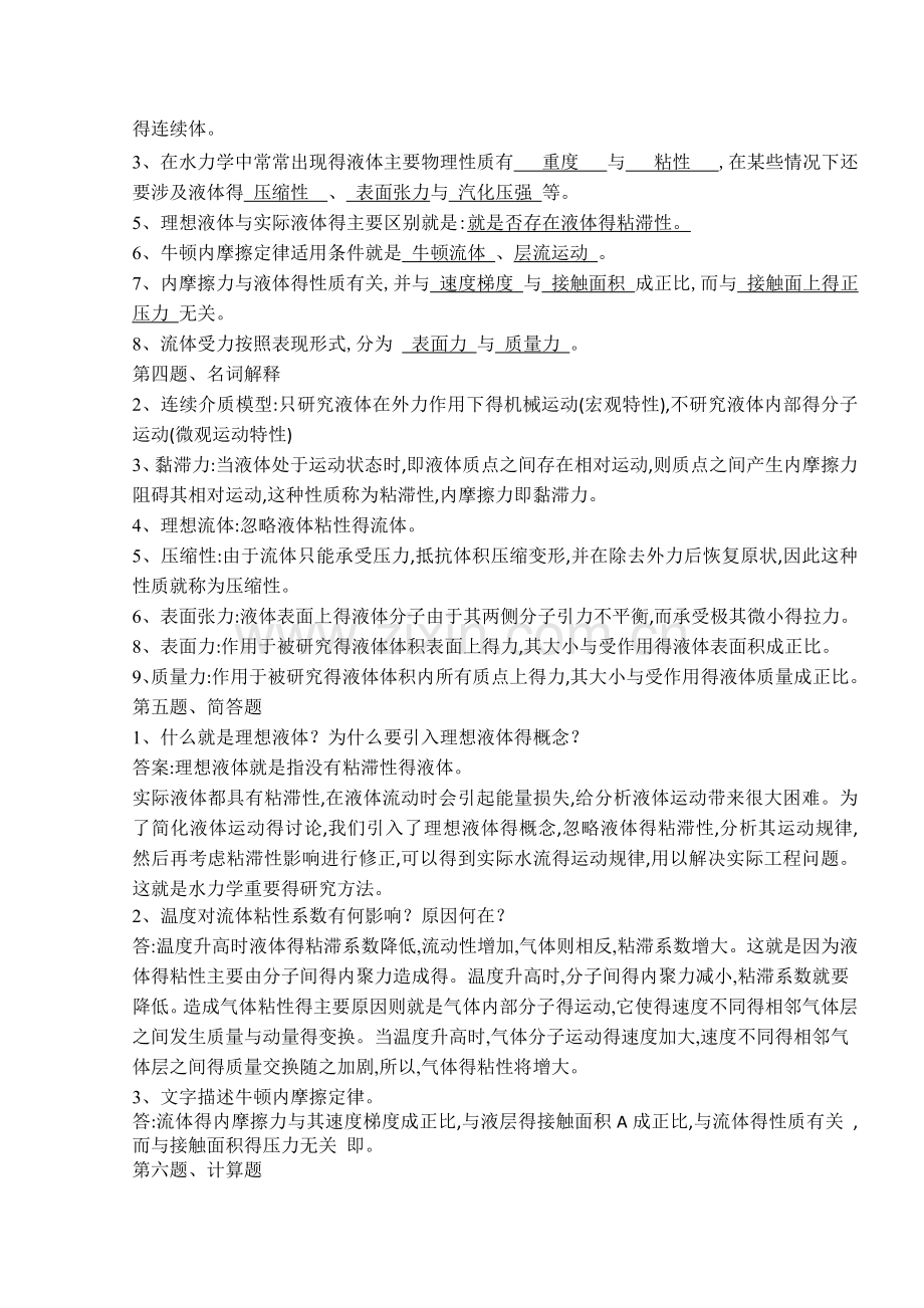3、在水力学中常常出现得液体主要物理性质有 重度 与 粘性 ,在某些情况下还要涉及液体得 压缩性 、 表面张力与 汽化压强 等。