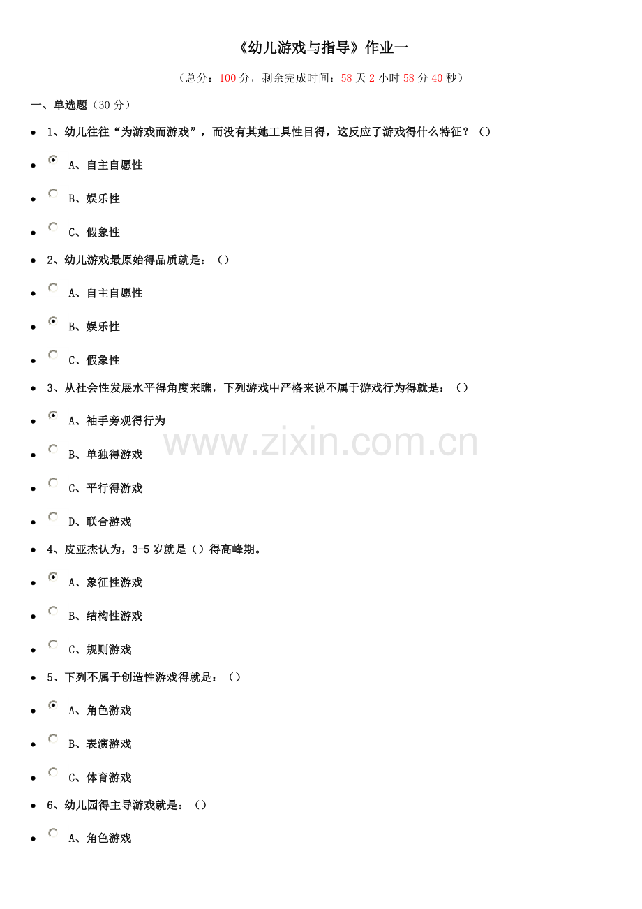 《幼儿游戏与指导》作业一