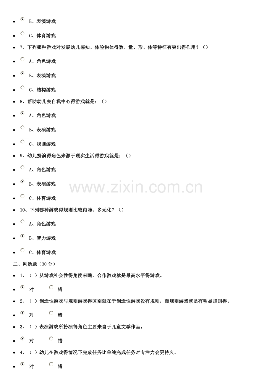 · 7、( )角色游戏结束得时机一般最好选在兴致降低但还保有游戏兴趣得时候。