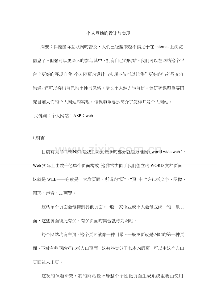 关键词:个人网站;ASP;web
