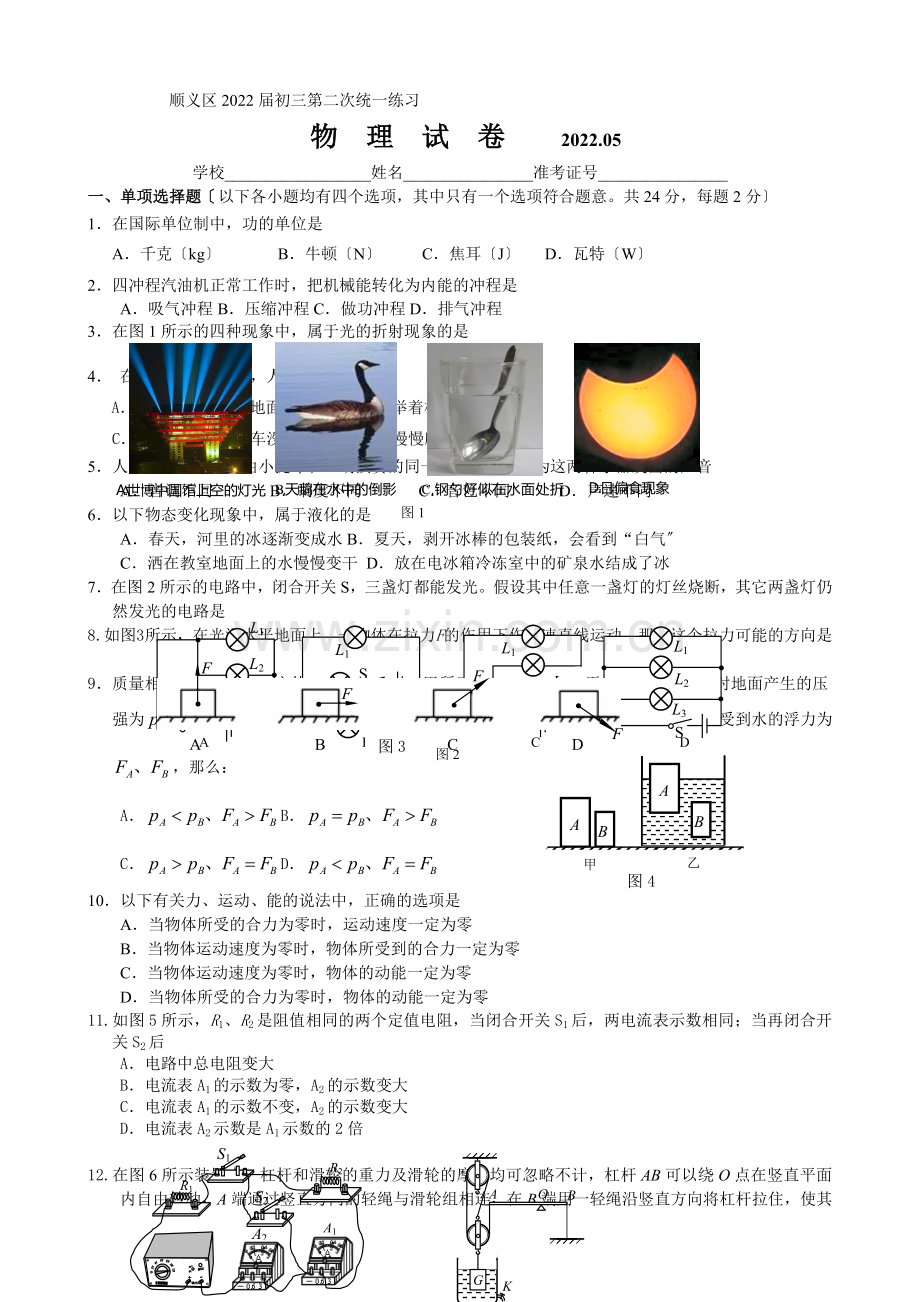 3.在图1所示的四种现象中,属于光的折射现象的是