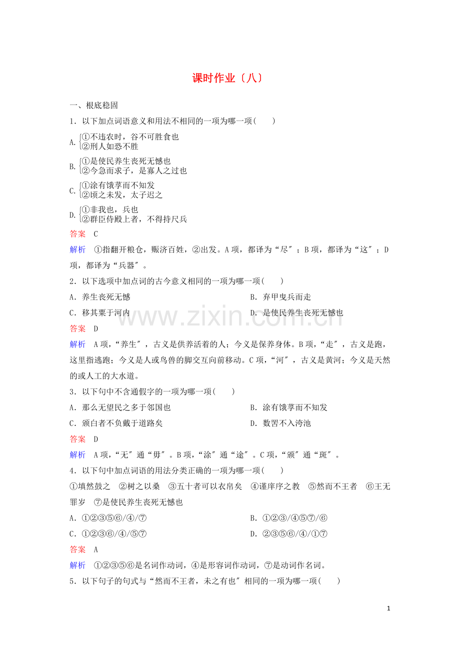 1.以下加点词语意义和用法不相同的一项为哪一项( )