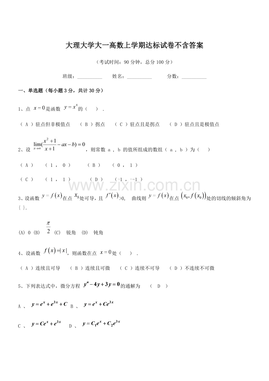 2、设 ,则常数 a , b 的值所组成的数组( a , b )为( )
