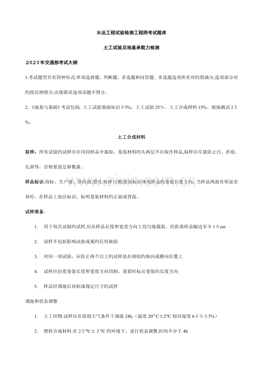 2.《地基与基础》考试包括:土工试验基础知识35%、土工试验25%、土工合成材料15%、现场测试25%。