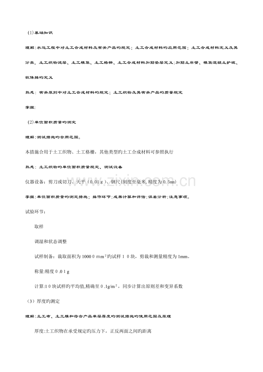 熟悉:土工织物旳单位面积质量规定、测试设备