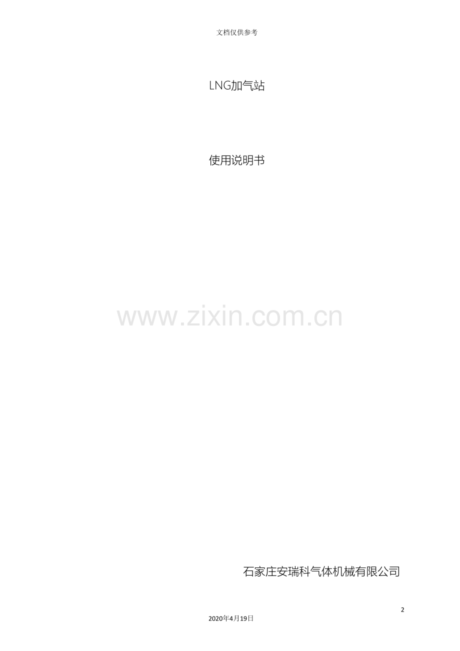 本手册用于使操作者熟悉由本公司提供的LN汽车加气站的性能、安全防护、操作步骤和维修、保养等,以达到个人熟练操作的目的。