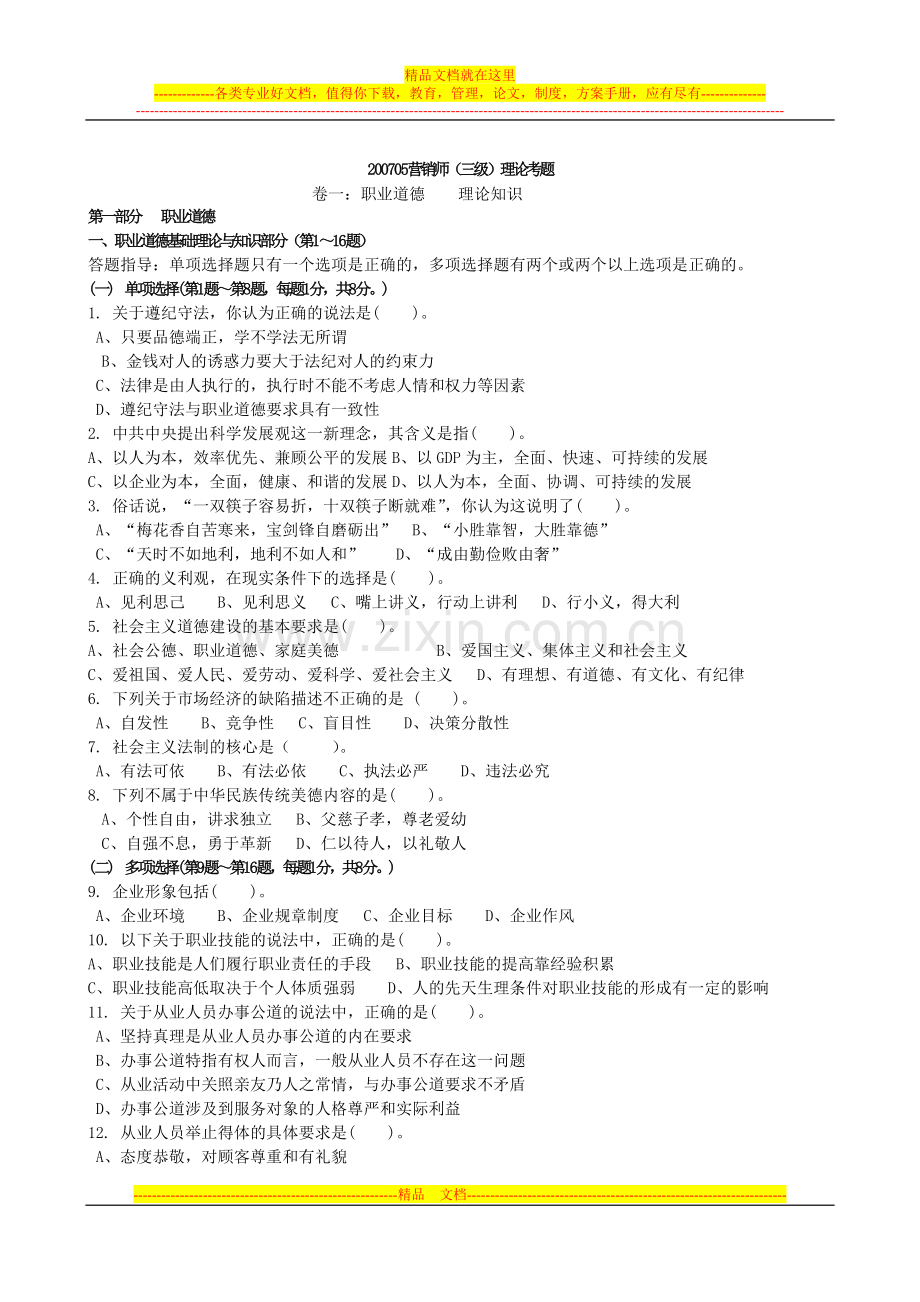 一、单项选择(第26题~第85题,每题1分,共60分。)