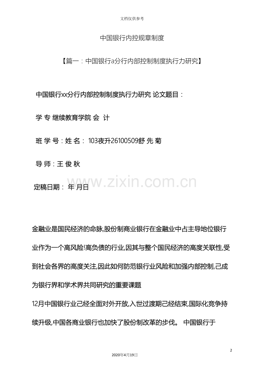 【篇一:中国银行a分行内部控制制度执行力研究】