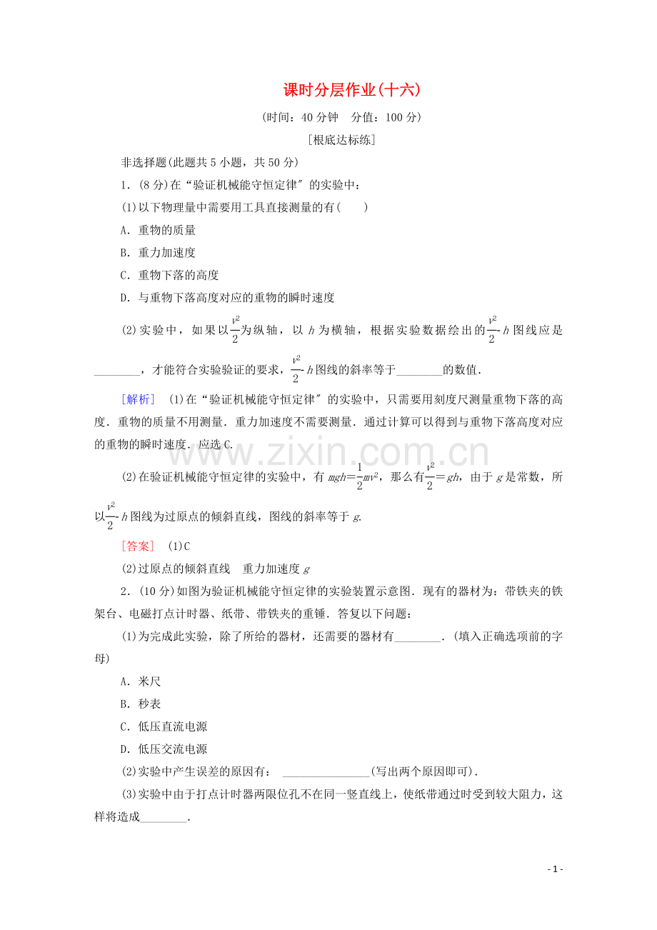 [解析] (1)在“验证机械能守恒定律〞的实验中,只需要用刻度尺测量重物下落的高度.重物的质量不用测量.重力加速度不需要测量.通过计算可以得到与重物下落高度对应的重物的瞬时速度.应选C.