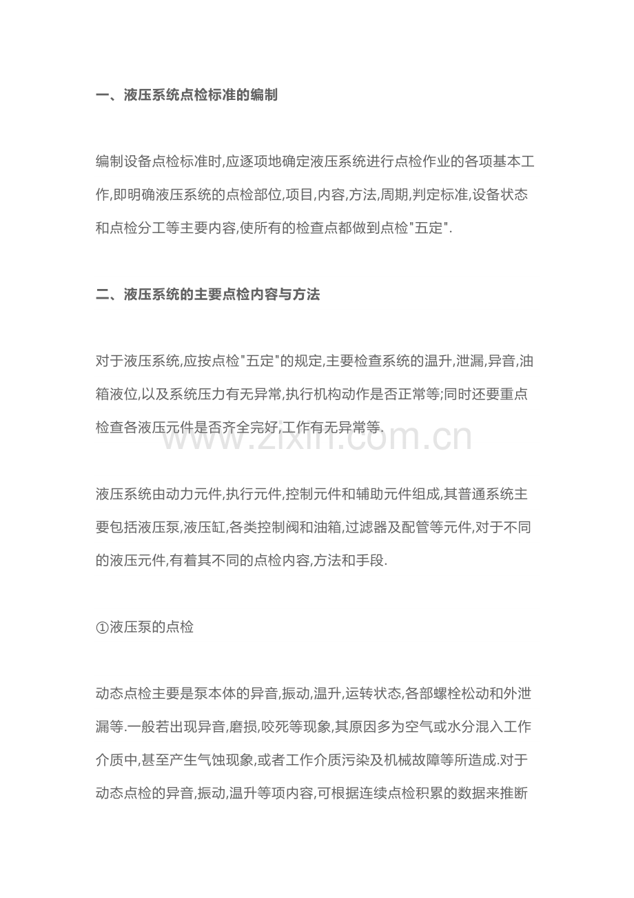 一、液压系统点检标准的编制