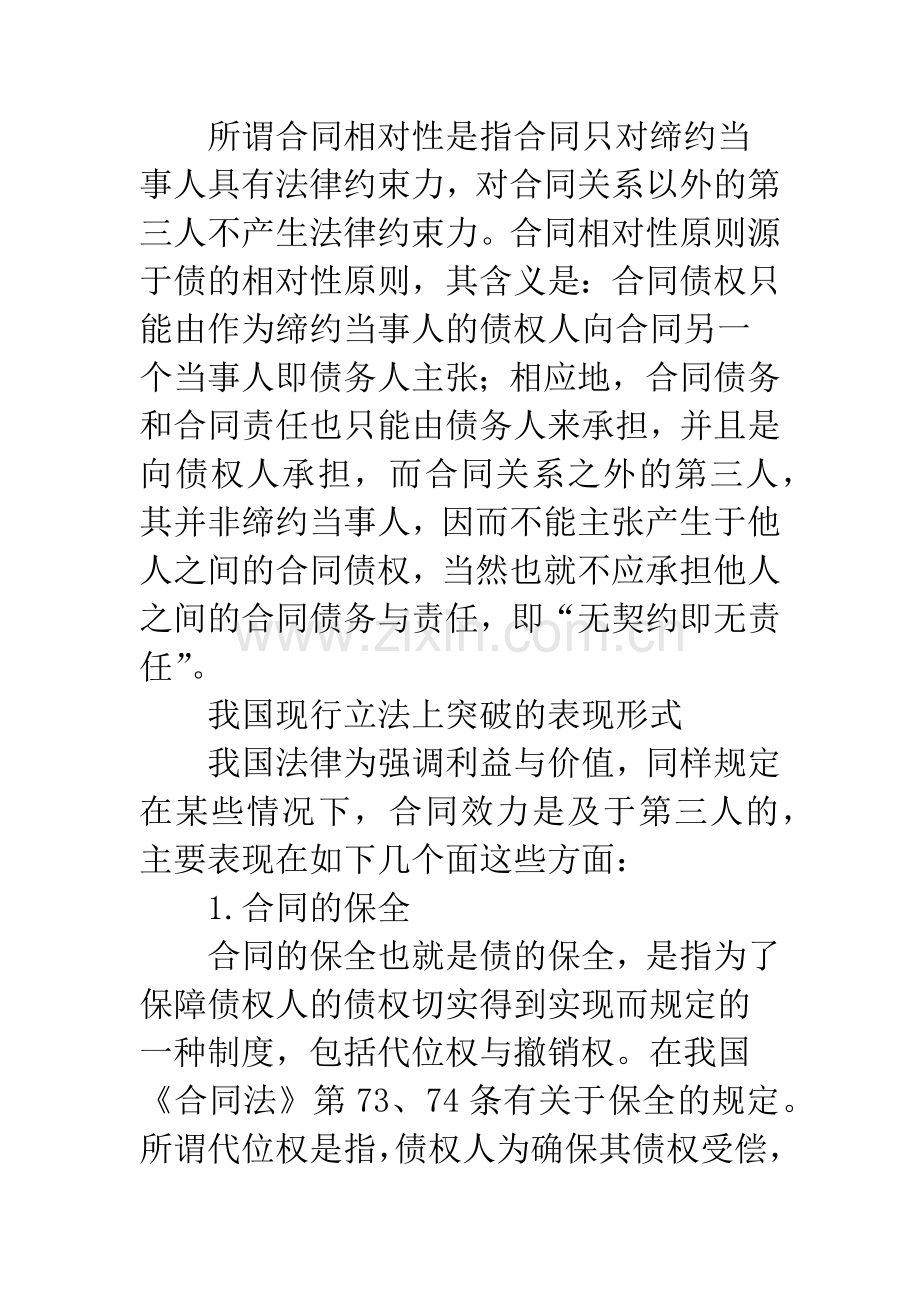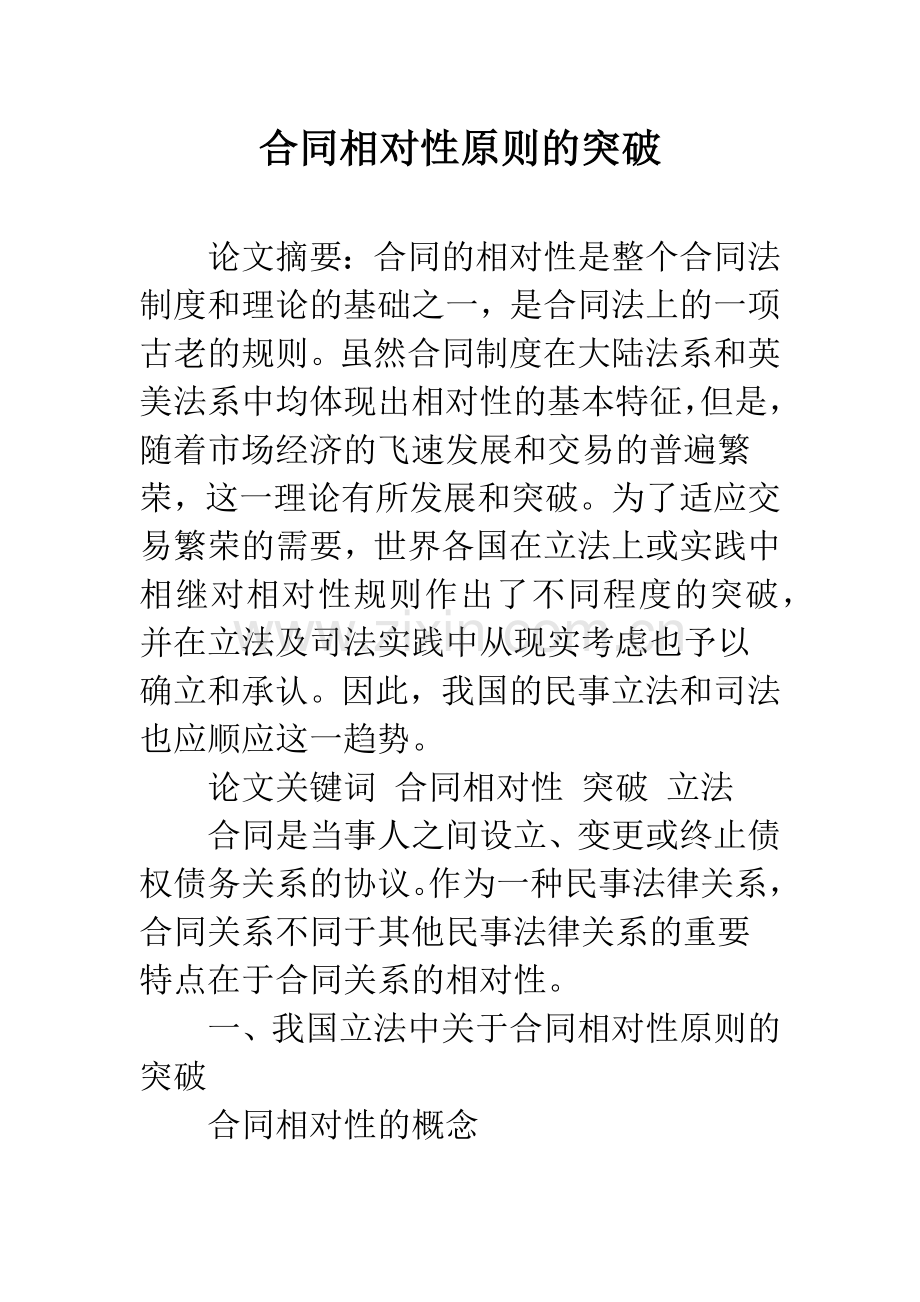 论文关键词 合同相对性 突破 立法