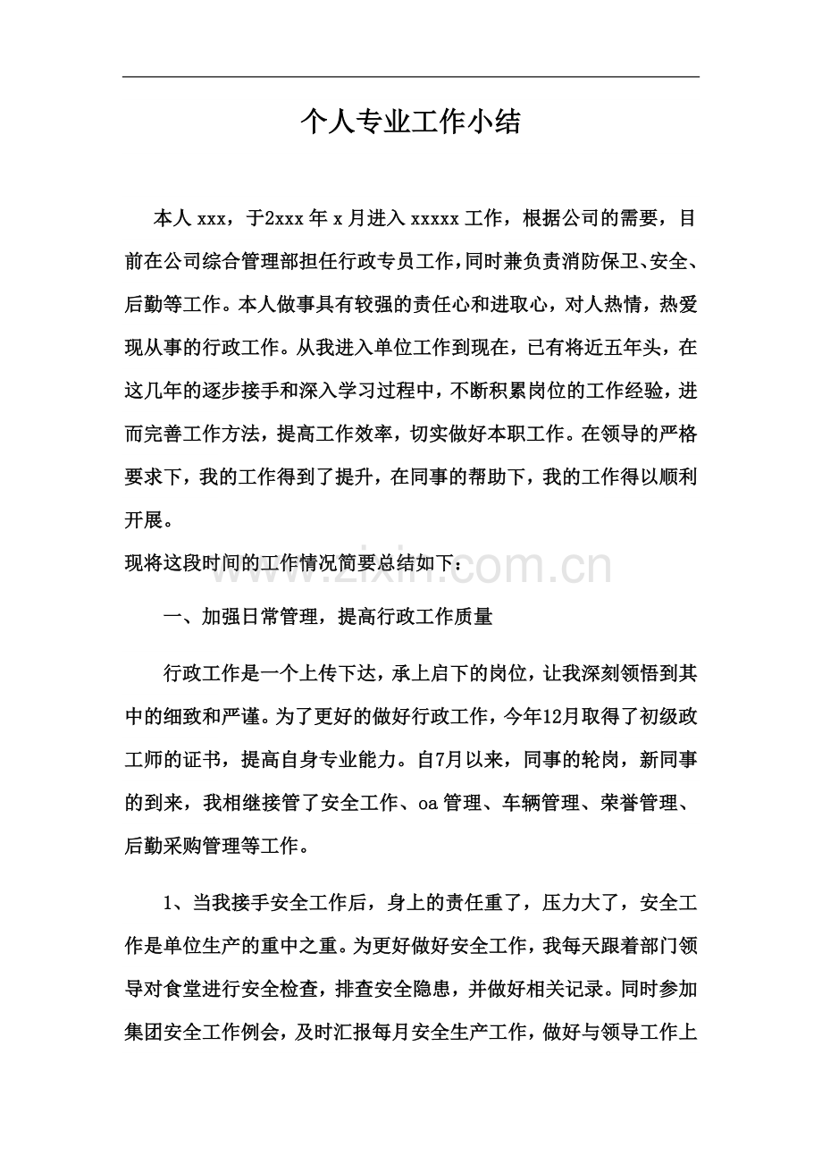 本人xxx,于2xxx年x月进入xxxxx工作,根据公司的需要,目前在公司综合管理部担任行政专员工作,同时兼负责消防保卫、安全、后勤等工作。本人做事具有较强的责任心和进取心,对人热情,热爱现从事的行政工作。从我进入单位工作到现在,已有将近五年头,在这几年的逐步接手和深入学习过程中,不断积累岗位的工作经验,进而完善工作方法,提高工作效率,切实做好本职工作。在领导的严格要求下,我的工作得到了提升,在同事的帮助下,我的工作得以顺利开展。
