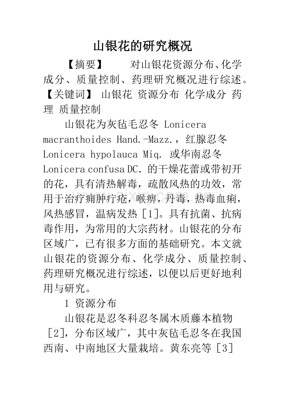 【摘要】 对山银花资源分布、化学成分、质量控制、药理研究概况进行综述。
