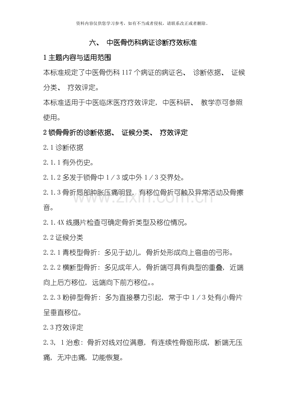2锁骨骨折的诊断依据、 证候分类、 疗效评定