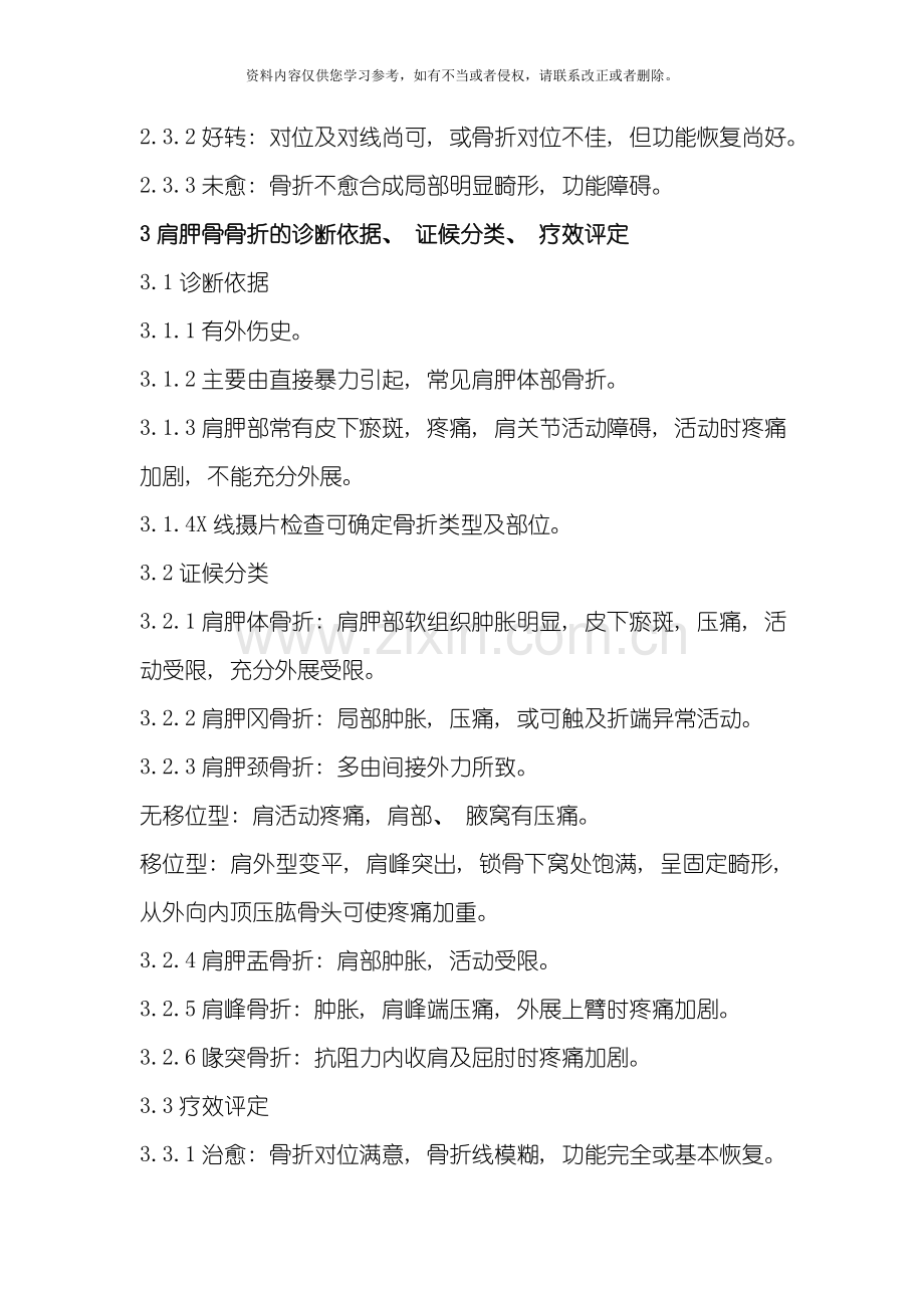 3肩胛骨骨折的诊断依据、 证候分类、 疗效评定