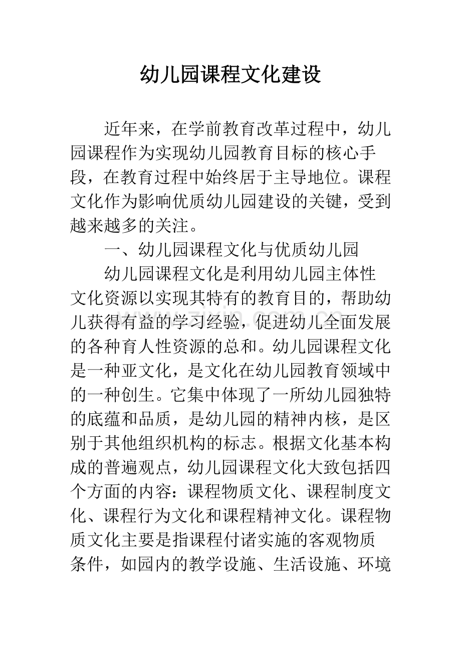 一、幼儿园课程文化与优质幼儿园
