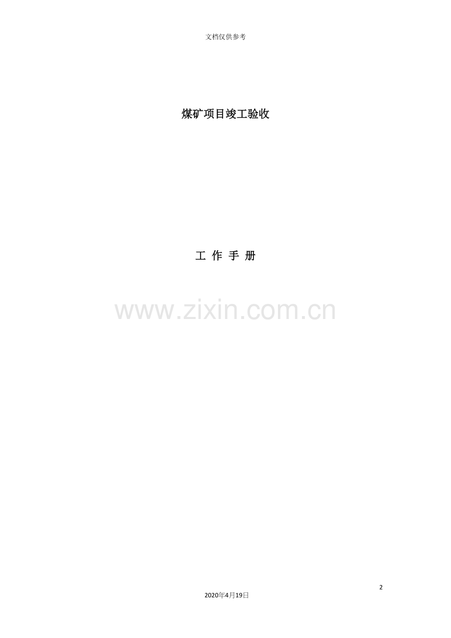 为顺利完成矿井及选煤厂项目竣工验收,正确、科学地指导矿井及选煤厂项目竣工验收工作,特借鉴其它煤矿项目验收经验,编制本竣工验收手册。根据国家政策的不断变化情况要做到及时调整与时俱进。