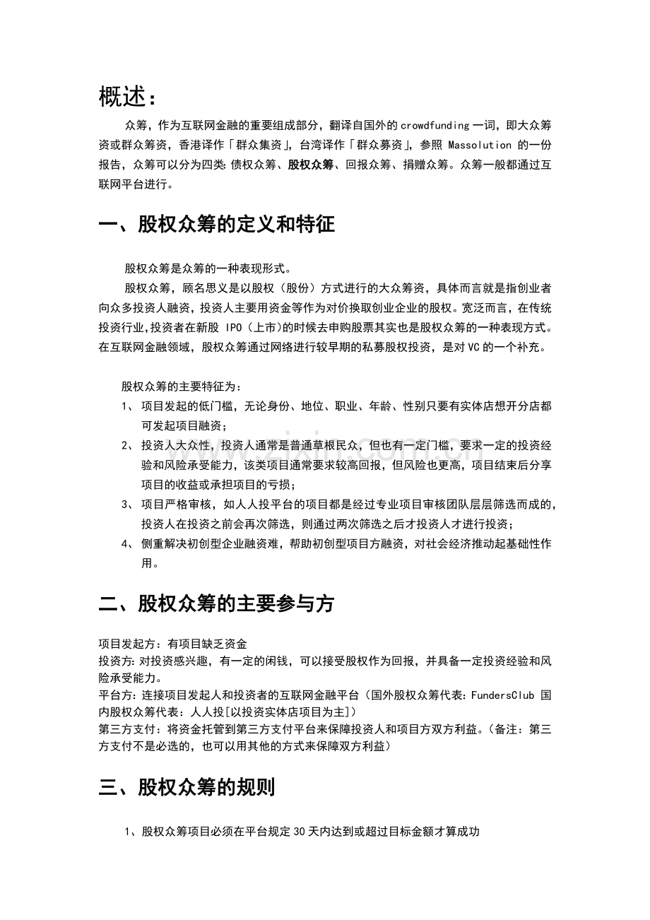 由于中美之间法律、政策的差异性,股权制众筹在我国化身为凭证式、会籍式、天使式三大类表现形式。凭证式众筹一般都是通过熟人介绍加入众筹项目,投资者不成为股东;会籍式投资者则成为被投资企业的股东。天使式则有明确的财务回报要求。