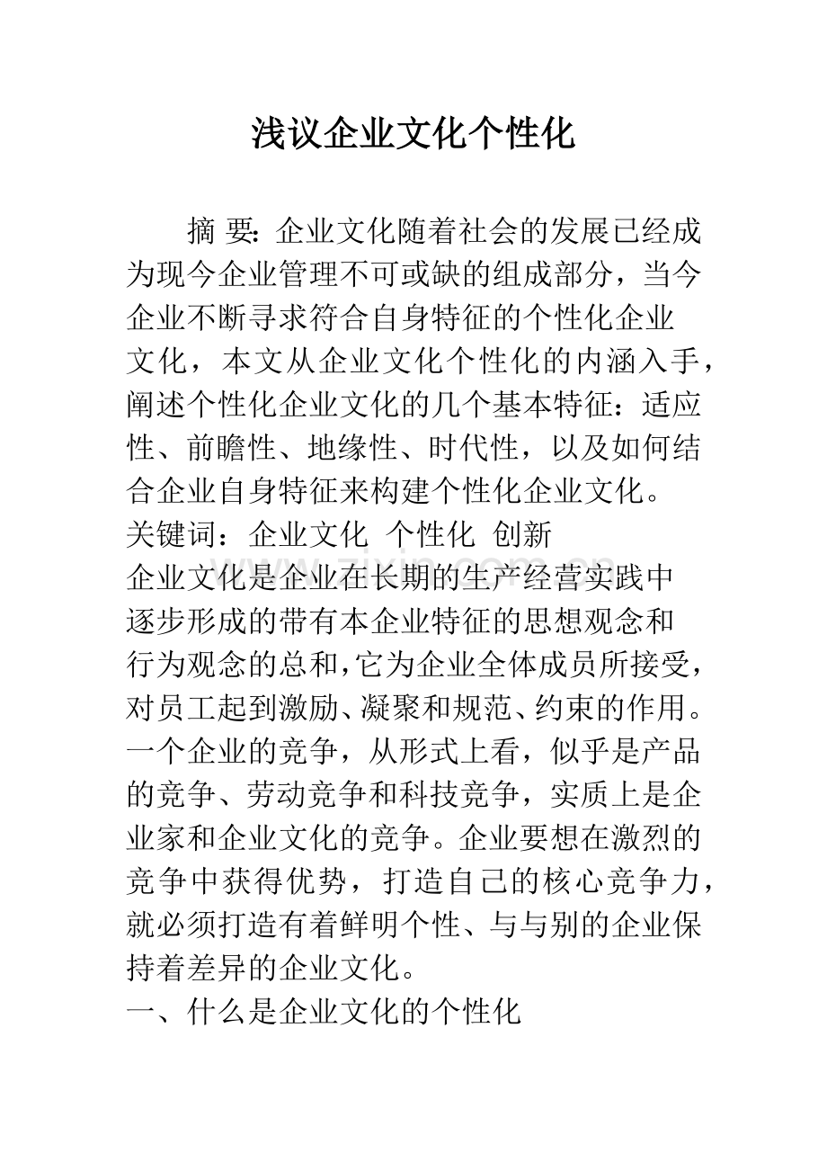 摘 要:企业文化随着社会的发展已经成为现今企业管理不可或缺的组成部分,当今企业不断寻求符合自身特征的个性化企业文化,本文从企业文化个性化的内涵入手,阐述个性化企业文化的几个基本特征:适应性、前瞻性、地缘性、时代性,以及如何结合企业自身特征来构建个性化企业文化。