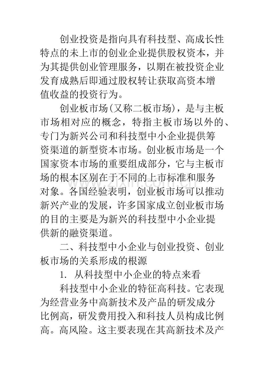 二、科技型中小企业与创业投资、创业板市场的关系形成的根源