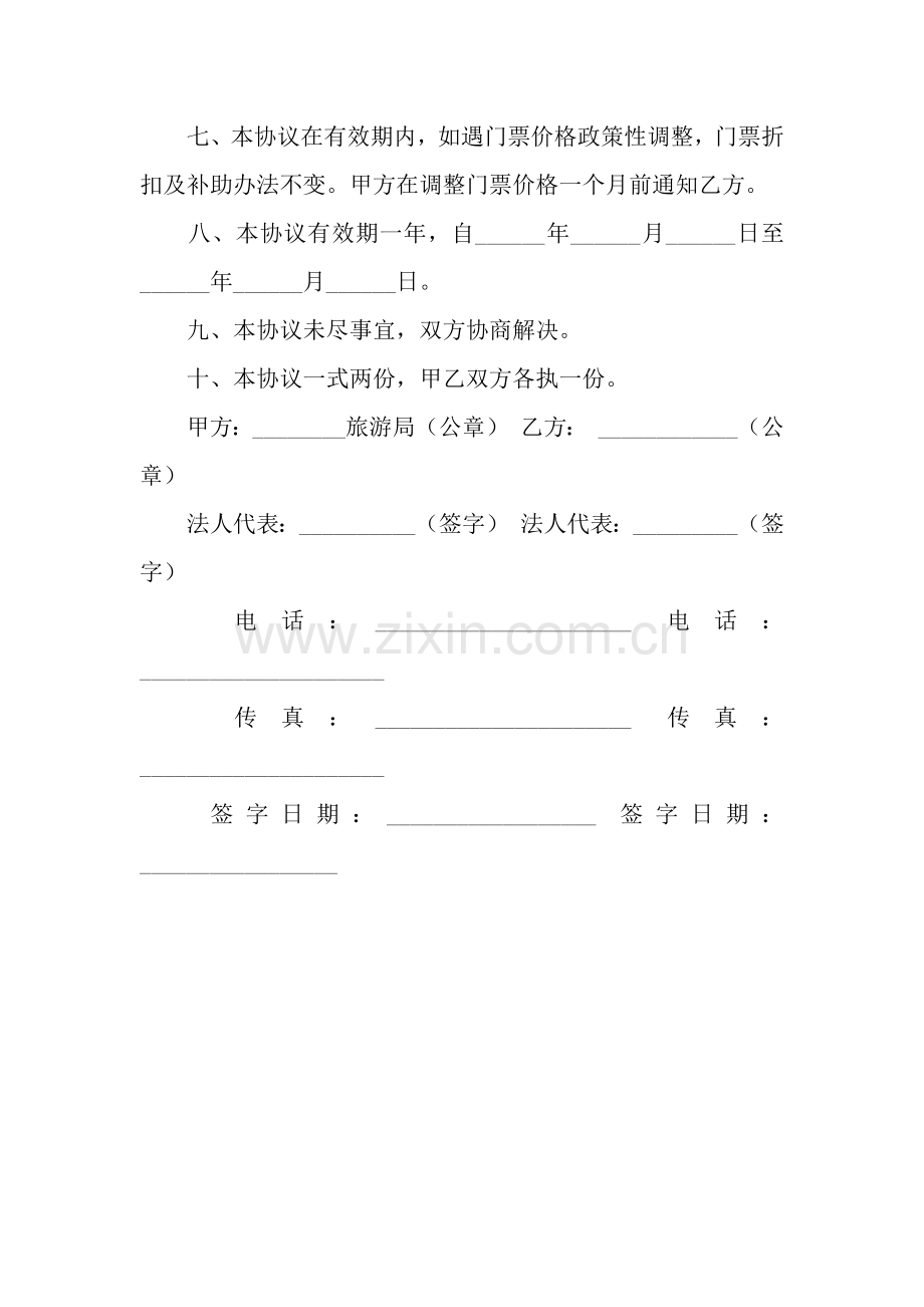 七、本协议在有效期内,如遇门票价格政策性调整,门票折扣及补助办法不变。甲方在调整门票价格一个月前通知乙方。