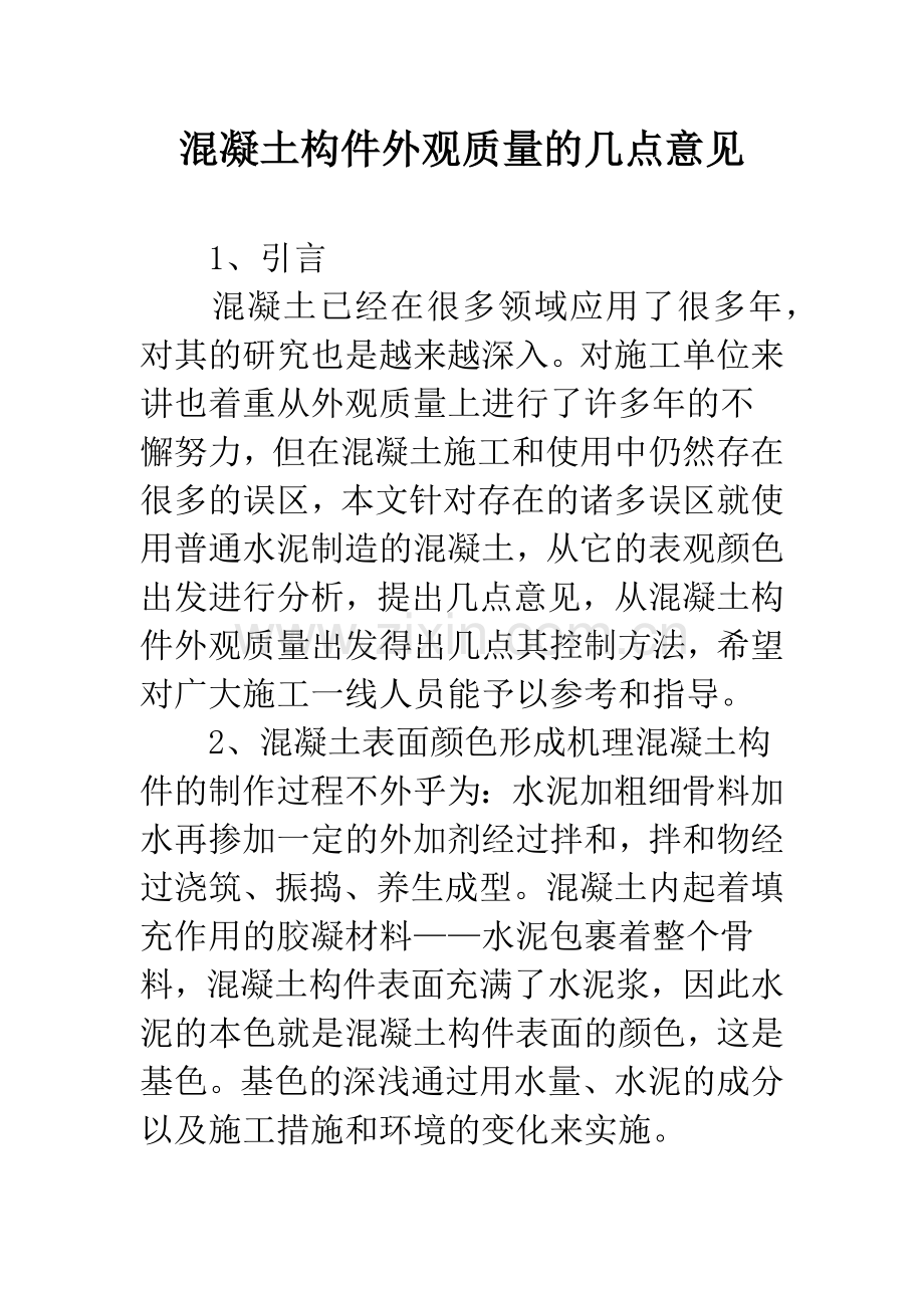 混凝土构件外观质量的几点意见