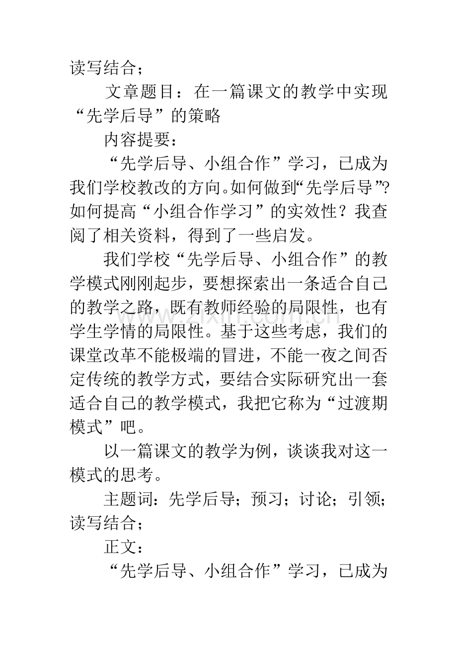 文章题目:在一篇课文的教学中实现“先学后导”的策略