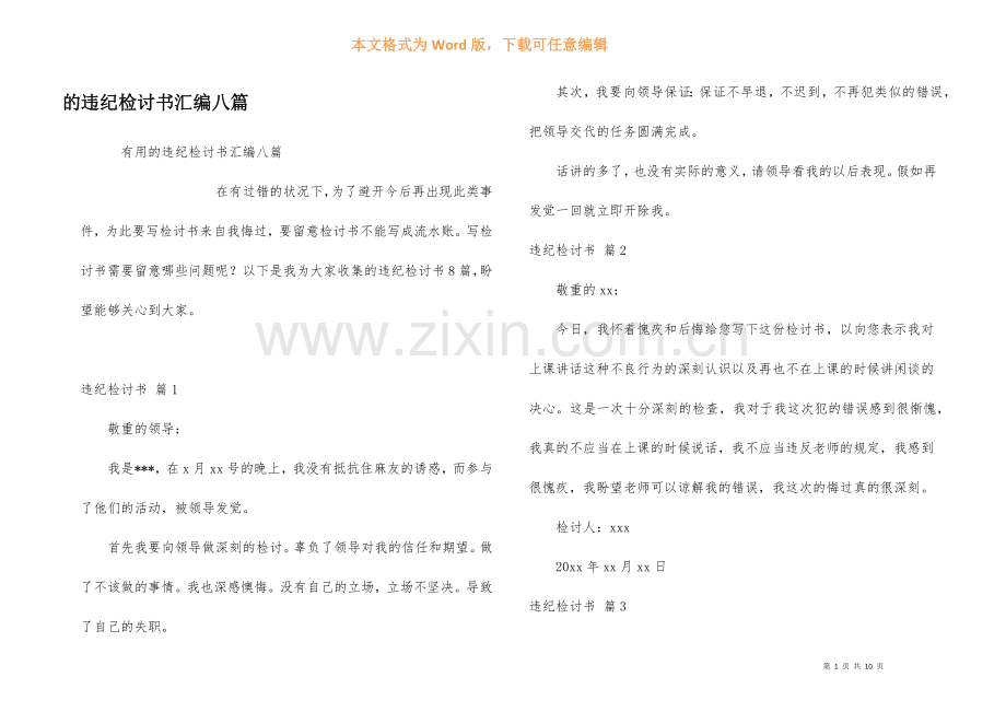 在有过错的状况下,为了避开今后再出现此类事件,为此要写检讨书来自我悔过,要留意检讨书不能写成流水账。写检讨书需要留意哪些问题呢?以下是我为大家收集的违纪检讨书8篇,盼望能够关心到大家。
