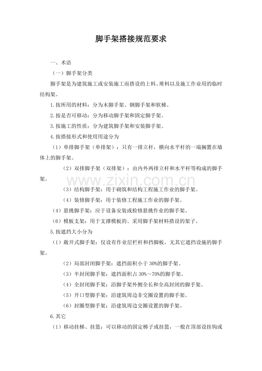 1.脚手架的搭设、维护、拆除等作业,在2m以上的均为高处作业,应严格执行高处作业安全规定。