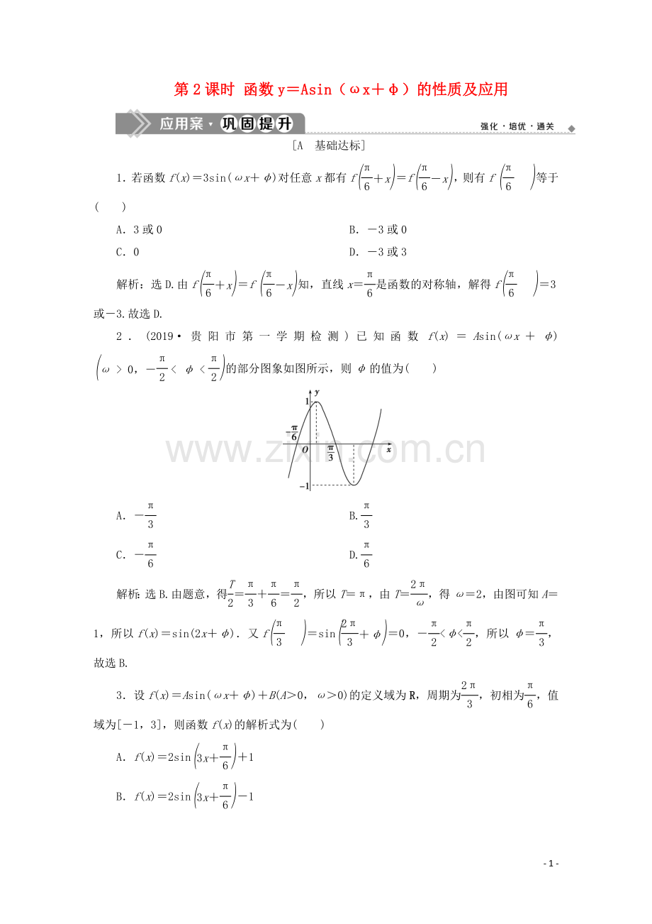 第2课时 函数y=Asin(ωx+φ)的性质及应用
