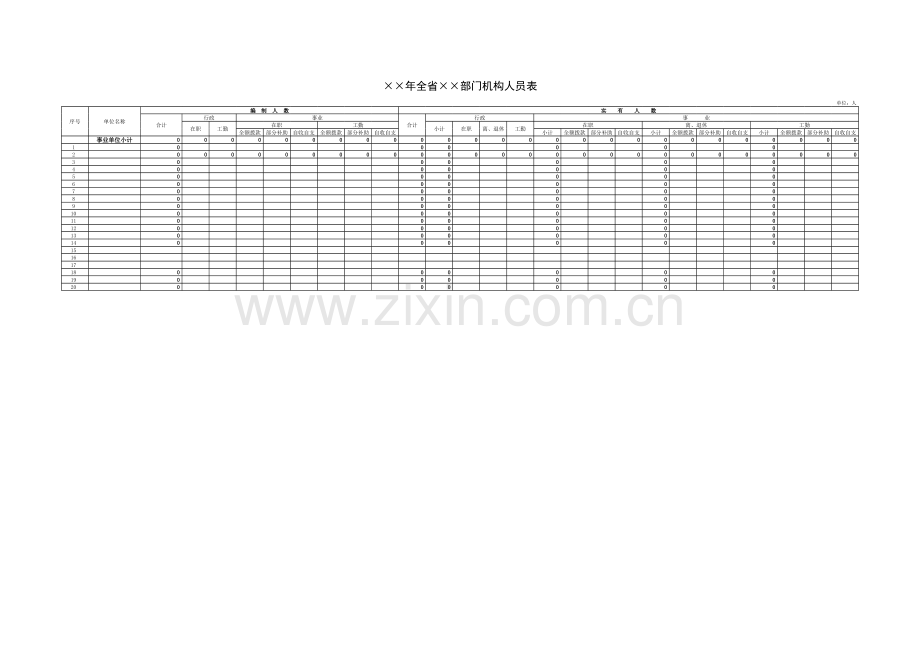 年全省部门机构人员表单位:人序号单位名称编编 制制 人人 数数实实 有有 人人 数数合计行政事业合计行政事 业在职工勤在职工勤小计在职离、退休工勤在职离、退休工勤全额拨款部分补助自收自支全额拨款部分补助自收自支小计全额拨款部分补助自收自支小计全额拨款部分补助自收自支小计全额拨款部分补助自收自支事事业业单单位位小小计计0 00 00 00 00 00 00 00 00 00 00 00 00 00 00 00 00 00 00 00 00 00 00 00 00 00 010 00 00 00 00 00 020 00 00 00 00 00 00 00 00 00 00 00 00 00 00 00 00 00 00 00 00 00 00 00 00 00 030 00 00 00 00 00 040 00 00 00 00 00 050 00 00 00 00 00 060 00 00 00 00 00 070 00 00 00 00 00 080 00 00 00 00 00 090 00 00 00 00 00 0100 00 00 00 00 00 0110 00 00 00 00 00 0120 00 00 00 00 00 0130 00 00 00 00 00 0140 00 00 00 00 00 0151617180 00 00 00 00 00 0190 00 00 00 00 00 0200 00 00 00 00 00 0