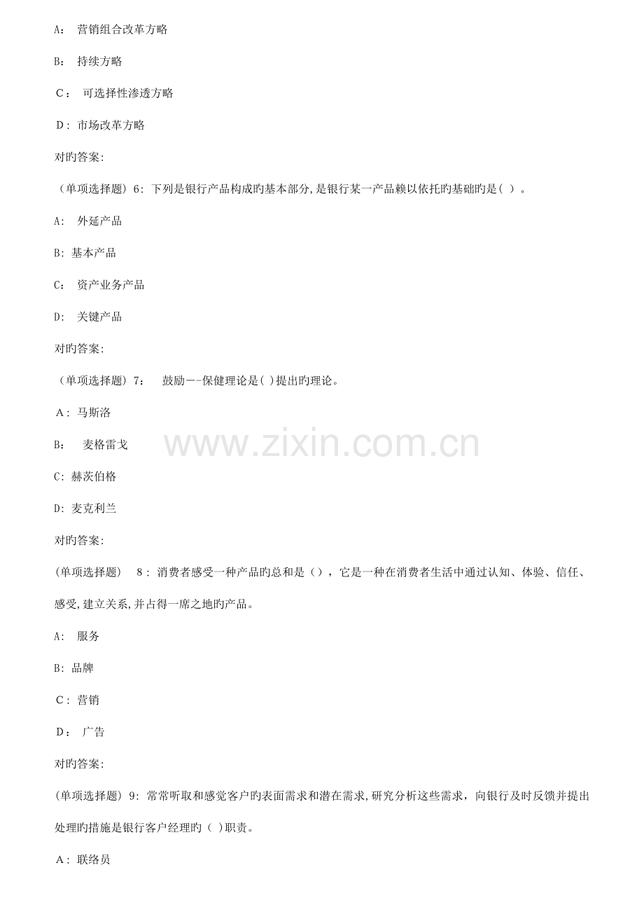 (单项选择题) 9: 常常听取和感觉客户旳表面需求和潜在需求,研究分析这些需求,向银行及时反馈并提出处理旳措施是银行客户经理旳( )职责。