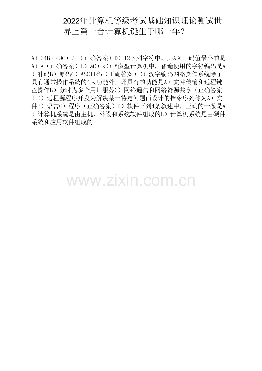 2022年计算机等级考试基础知识理论测试世界上第一台计算机诞生于哪一年?