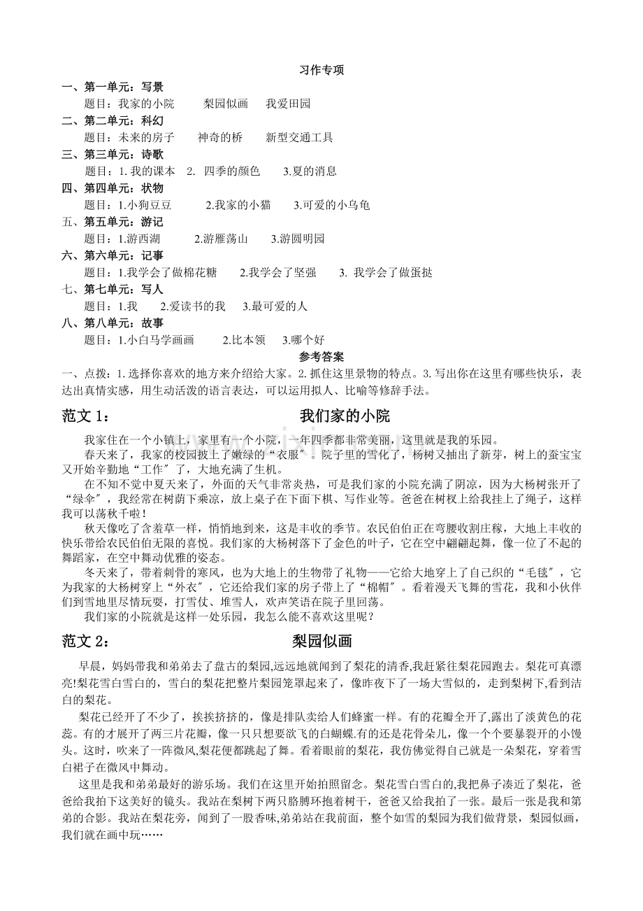 一、点拨:1.选择你喜欢的地方来介绍给大家。2.抓住这里景物的特点。3.写出你在这里有哪些快乐,表达出真情实感,用生动活泼的语言表达,可以运用拟人、比喻等修辞手法。
