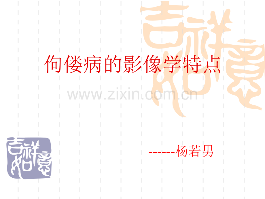 佝偻病的影像学特点-杨若男目录我国小儿佝偻病的现状佝偻病发生机制、病理佝偻病的临床分期及影像学特点总结我国小儿佝偻病的现状n维生素缺乏性佝偻病目前在发展中国家仍然是一个重要的问题。n近年调查结果显示:在中国小儿佝偻病患病率有上升趋势。n 影响因素与城市环境污染、母乳喂养减少年轻父母科学育儿知识缺乏等有关。佝偻病发生机制 维生素维生素D缺乏缺乏 肠道吸收钙磷减少肠道吸收钙磷减少 血钙降低血钙降低刺激甲状旁腺分泌刺激甲状旁腺分泌PTH抑制肾小管重吸收磷抑制肾小管重吸收磷血磷降低血磷降低血清钙磷浓度降低血清钙磷浓度降低骨矿化受阻骨矿化受阻佝偻病佝偻病异常的骨骼X线表现佝偻病发生机制细胞外液钙磷不足,破坏了软骨细胞正常的增殖分化,骨基质不能正常矿化。成骨细胞代偿性增生,碱性磷酸酶分泌增加。骨样组织堆积于干骺段,骺端增厚,向外膨出,形成“串珠”、“手足镯”。病理形 佝偻病主要为生长中的软骨和新生的类骨组织钙化不足。病理变化始于生长旺盛的干骺端和骨膜下,致骺板增厚,干骺端杯口状增宽,骨干易弯曲变形。佝偻病的临床分期一、初期(早期)多为神经系统兴奋性增高表现,如易激怒,烦躁等。此期无骨骼改变。二、活动期(激期)出现典型的骨骼改变表现部位与该年龄骨骼生长速度较快的部位相一致三、恢复期治疗2-3周后,骨骼X线改变有所改善四、后遗症期多见于2岁以后的儿童或秋季因婴幼儿严重佝偻病,残留不同程度的骨骼畸形佝偻病的诊断正确的诊断必须依据维生素D缺乏的病因,临床表现、血生化和骨骼X线变化检查仅依据临床表现的诊断准确率较低骨骼的改变可靠血清25-(OH)D3水平为最可靠的诊断标准血生化与骨骼的X线检查为诊断的“金标准”佝偻病的影像学特点1 1、骨骺及干骺端改变骨骺及干骺端改变:骺板增厚,先期钙化带不规则变薄、骺板增厚,先期钙化带不规则变薄、模糊或消失。干骺端宽大,呈杯口状、模糊或消失。干骺端宽大,呈杯口状、毛刷状改变,骨小梁稀疏。骨骺骨化中毛刷状改变,骨小梁稀疏。骨骺骨化中心出现延迟,密度低且不规则。心出现延迟,密度低且不规则。佝偻病的影像学特点佝偻病的影像学特点手腕部形成钝圆形环状隆起,形成“手足镯”多见于6个月的婴儿 佝偻病活动期:腕关节骨质密度普遍减低,尺桡骨干骺端呈毛刷状、杯口状改变,其边缘因骨样组织不规则钙化而成致密影。佝偻病活动期佝偻病活动期2 2、全身骨骼改变全身骨骼改变:密度减低,皮质变薄,骨小:密度减低,皮质变薄,骨小梁模糊。梁模糊。、下肢长骨:弯曲,膝内翻或膝外翻畸形等;、下肢长骨:弯曲,膝内翻或膝外翻畸形等;、胸廓:鸡胸,串珠肋;、胸廓:鸡胸,串珠肋;、头颅:方颅,囟门闭合延迟;、头颅:方颅,囟门闭合延迟;、骨盆:呈漏斗状或三叶形骨盆;、骨盆:呈漏斗状或三叶形骨盆;、脊椎:侧弯或后凸,椎间隙增宽。、脊椎:侧弯或后凸,椎间隙增宽。佝偻病的影像学特点佝偻病的影像学特点肋骨串珠,以两侧7-10肋最明显多见于1岁左右的婴幼儿 佝偻病肋骨变形:各肋骨前端增生膨大,状如串珠。佝偻病的影像学特点膝内翻,形成“O”形腿多见于1岁,站立行走后佝偻病的影像学特点 膝外翻,形成“X”形腿 多见于1岁,站立行走后佝偻病的影像学特点 膝外翻,形成“X”形腿 多见于1岁,站立行走后3 3、恢复期改变恢复期改变:先期钙化带再次出现并逐渐增厚(最先期钙化带再次出现并逐渐增厚(最初征象),骨骺相继出现,骨密度逐渐初征象),骨骺相继出现,骨密度逐渐恢复正常,骨小梁变清晰,严重的畸形恢复正常,骨小梁变清晰,严重的畸形多不能完全恢复,多不能完全恢复,可有可有假性骨折线。假性骨折线。佝偻病的影像学特点佝偻病恢复期佝偻病恢复期 佝佝偻偻病病恢恢复复期期佝偻病恢复期佝偻病恢复期根据年龄,如何选择病变部位进行检查?佝偻病的影像学特点头部胸部四肢脊柱病变表现患儿年龄颅骨软化方颅前囟增大肋骨串珠鸡胸漏斗胸肋膈沟手足镯下肢畸形后弯侧弯3-6个月8-9个月迟于1.5岁1岁左右1岁左右1岁左右1岁左右6个月1岁1岁总结佝偻病的骨骼病变多位于骨代谢活跃的部位年龄的不同,病变表现的部位也随着改变影像学检查对佝偻病的诊断具有重要意义thanks!