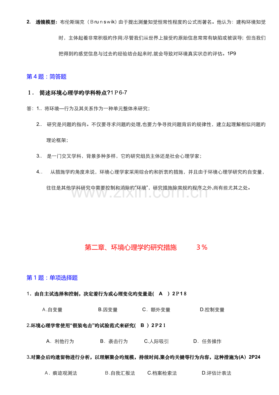 2.环境心理学是关注 人 与 环境 旳 互相作用 和 互有关系 旳学科。1P5X2
